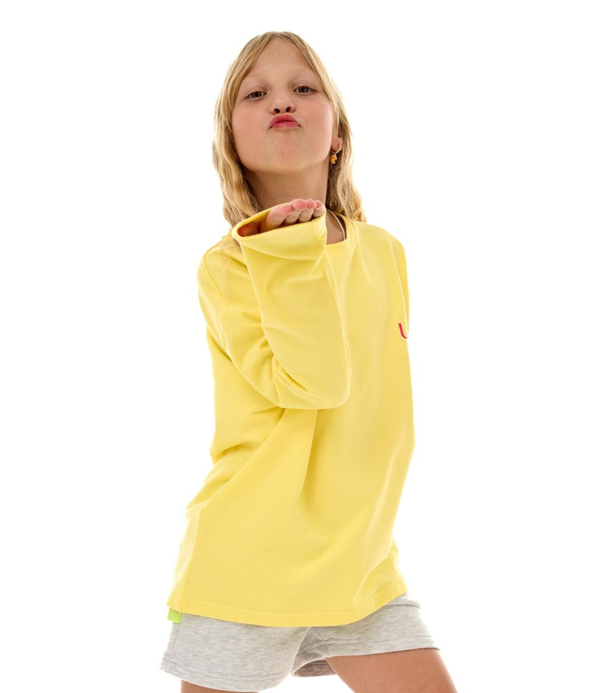 Лонгслив с велюр эффектом с принтом монограммы UMU в клубничном оттенке.