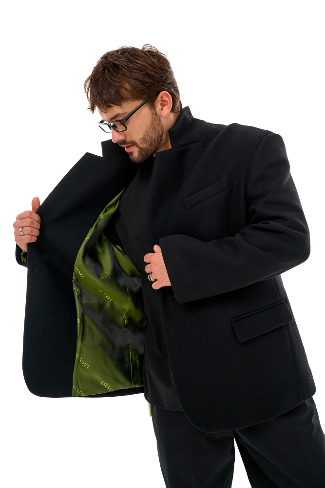 Новый жакет из плотной 100% шерсти. Посадка - оверсайз, брендированная подкладка и пуговицы.