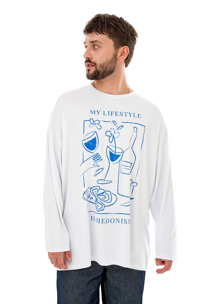 Лонгслив из тонкой вискозы с новым принтом My lifestyle is gedonism.