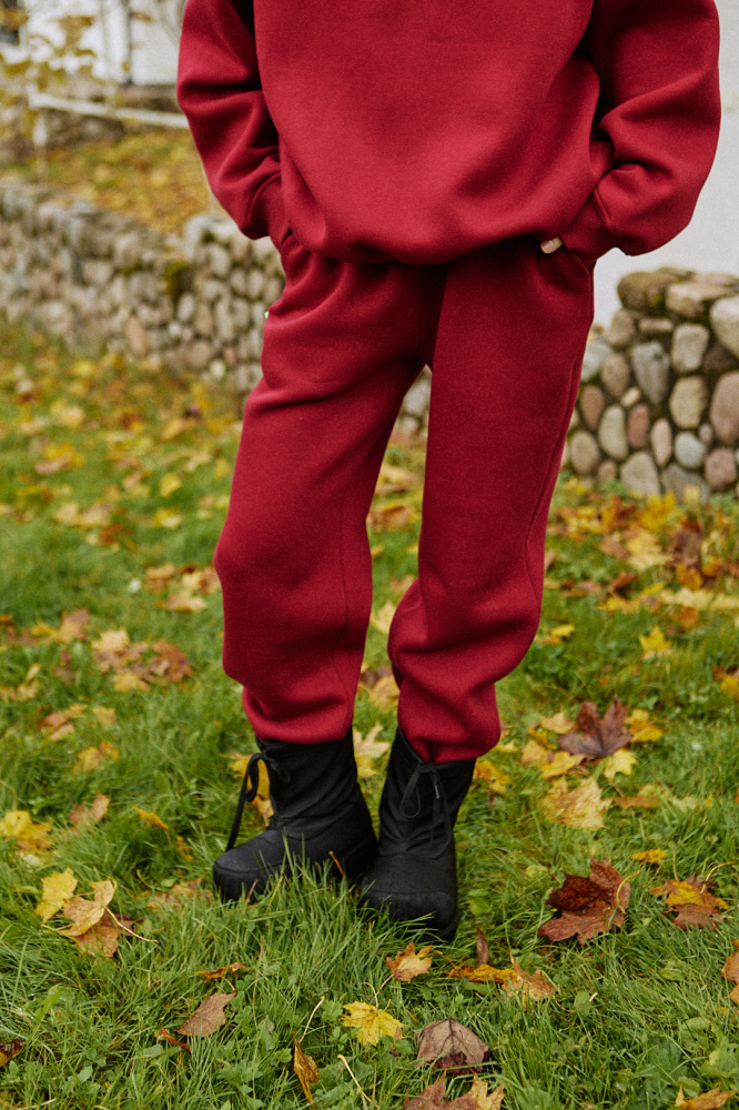 Базовые джоггеры с начесом в приятном винном оттенке.