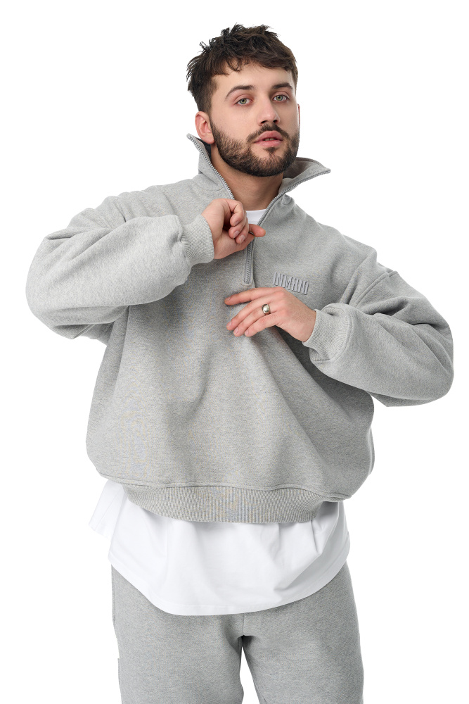 Свитшот Горло на Замке Мужской Серый Меланж (Микро Начес 100% хлопок)