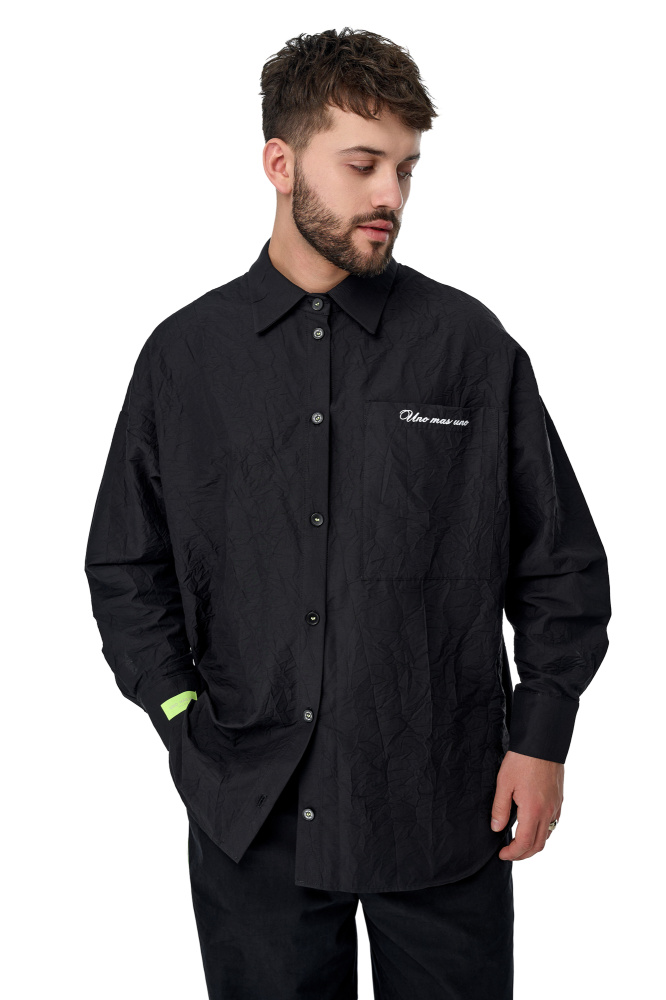Рубашка оверсайз посадки из приятного нарочито помятого хлопка с вышивкой UNO MAS UNO.