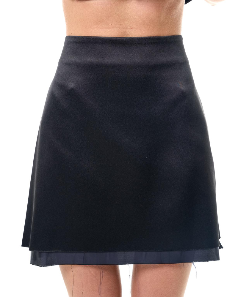 Юбка "мини" трапеция из атласной ткани с выглядывающей подкладкой - базовый вариант для ваших различных комплектаций.