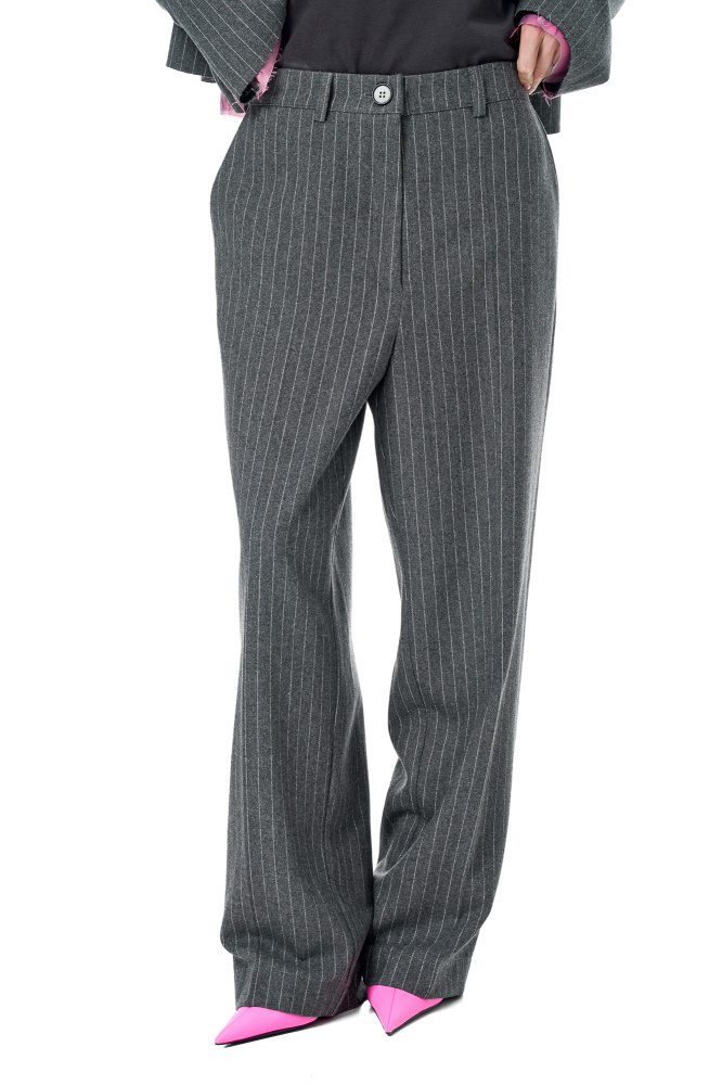 Базовые брюки из шерсти в полоску легкой оверсайз посадки.