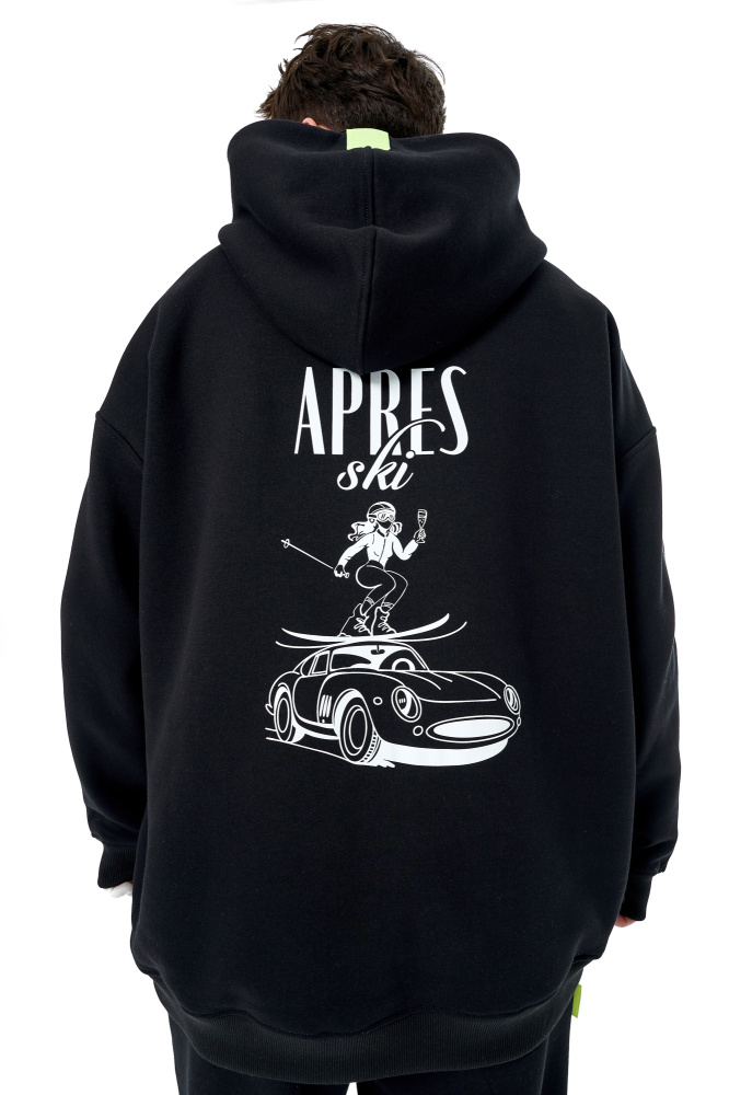 Худи с начёсом в темно-синем оттенке с принтом Apres-Ski, что дословно означает "отдых после катания на лыжах" - fun принт, чтобы разбавить зимние будни.
