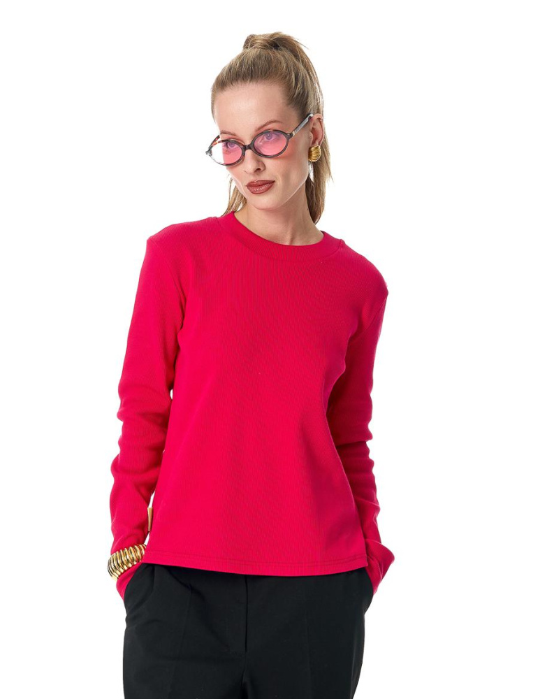 Лонгслив-лапша из плотной ткани в оттенке "фуксия".