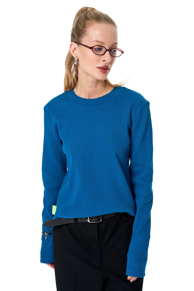 Лонгслив-лапша из плотной ткани в синем оттенке.