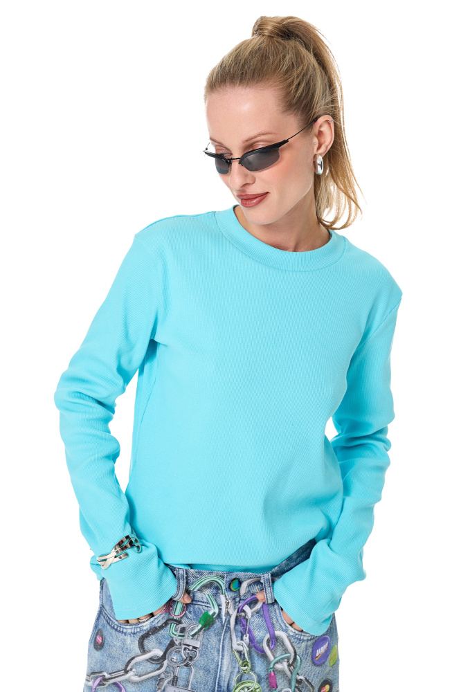 Лонгслив-лапша из плотной ткани в оттенке "тиффани".