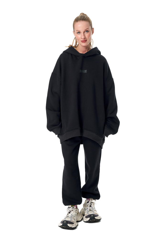Худи с начесом в темно-синем оттенке с выпуклым слитным логотипом UNO MAS UNO.