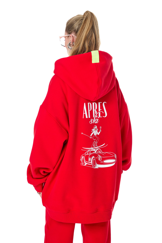 Худи с начёсом-плюш в ярко-красном цвете с принтом Apres-Ski, что дословно означает "отдых после катания на лыжах" - fun принт, чтобы разбавить зимние будни.