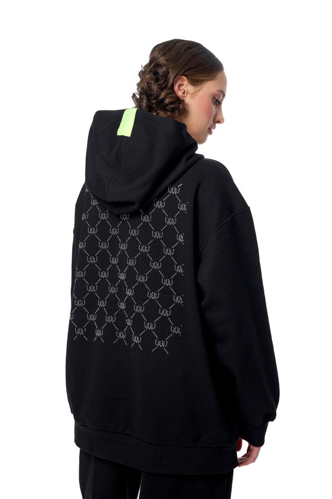 Толстовка из плотного хлопка с сеткой из страз в виде монограммы UMU.