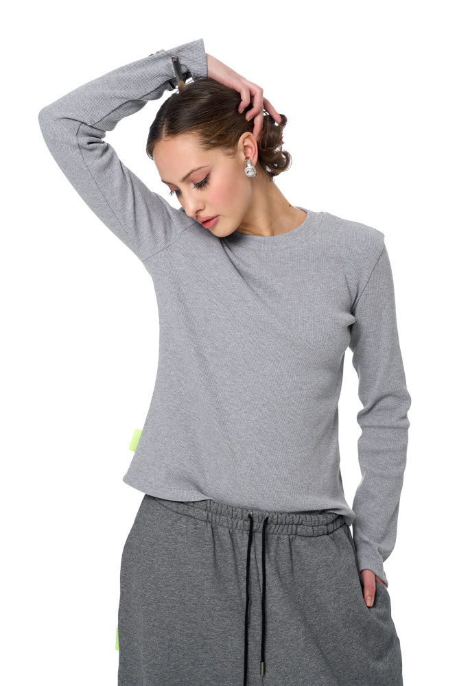 Лонгслив-лапша из плотной ткани в бетонном оттенке.