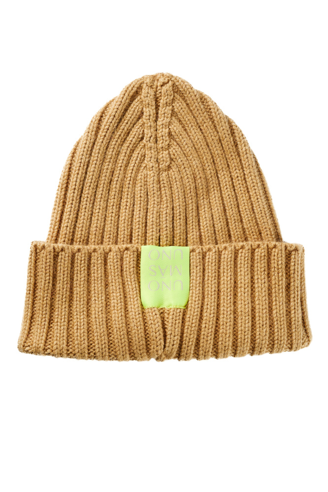 Шапка из ангоры умеренного объема в песочном оттенке.