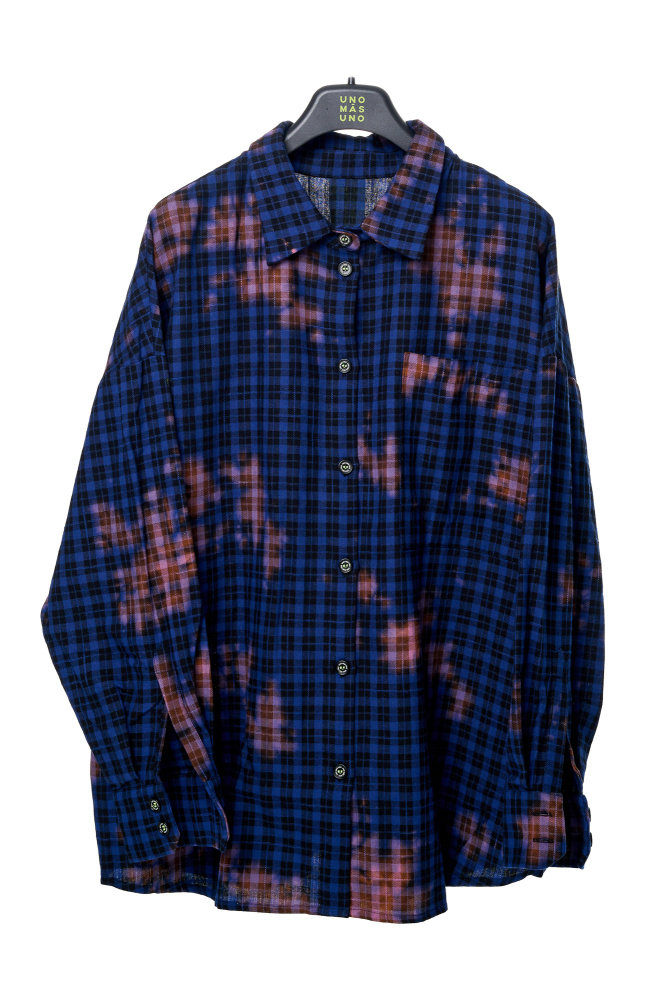 Рубашка из плотного хлопка с выбеленными пятнами acid wash.