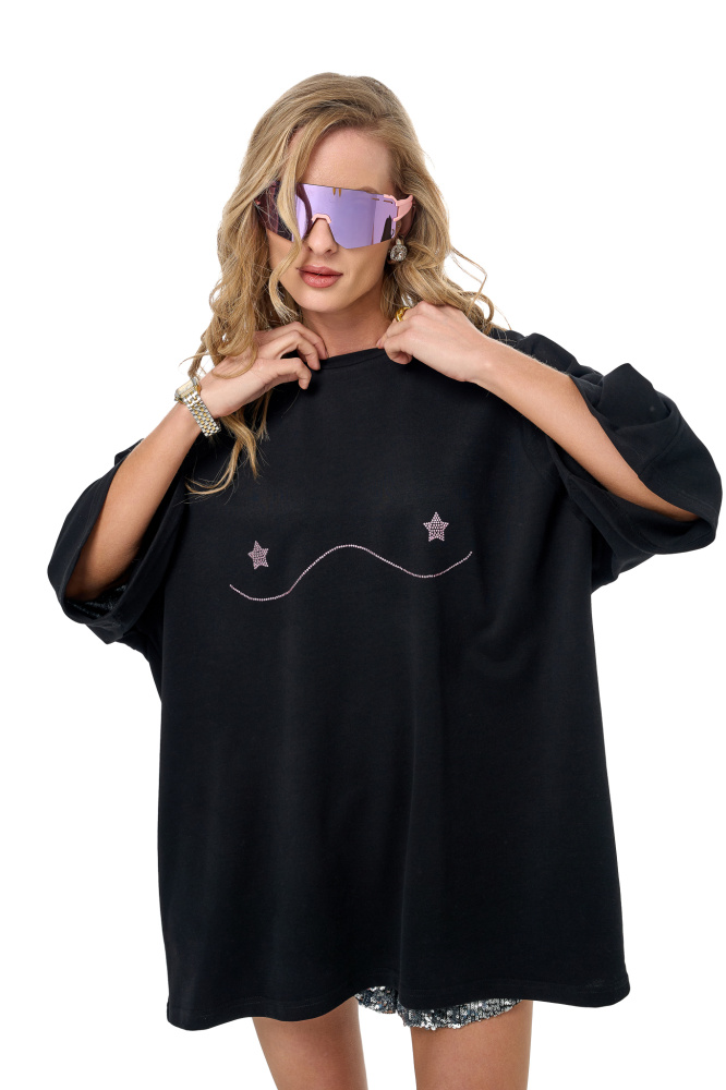 Футболка Овер Блэк Сисяо Стразы