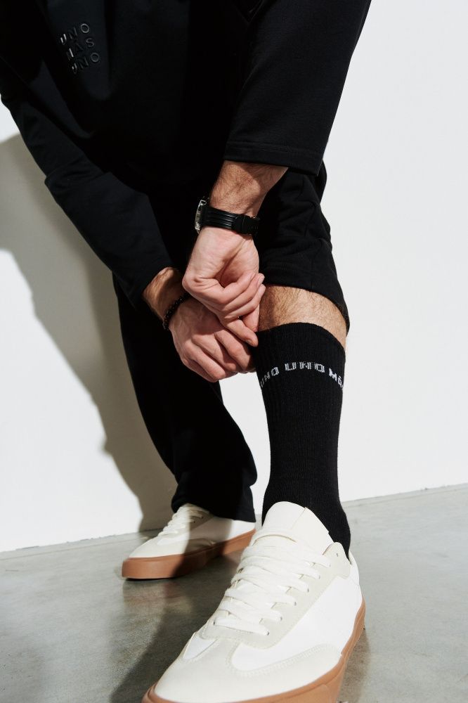 Высокие черные носки с надписью UNO MAS UNO.