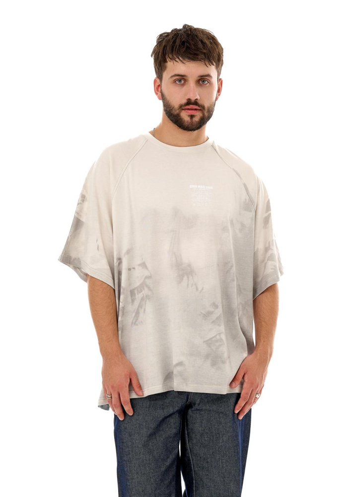 Футболка модели "овер" с рукавом реглан. Футболка из ткани, которая меняет цвет от температуры. Серый - холодно, белый - горячо.