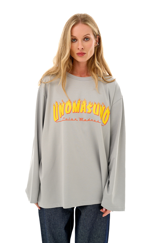 Лонгслив в сером "бетонном" оттенке с принтом "Трэшер".