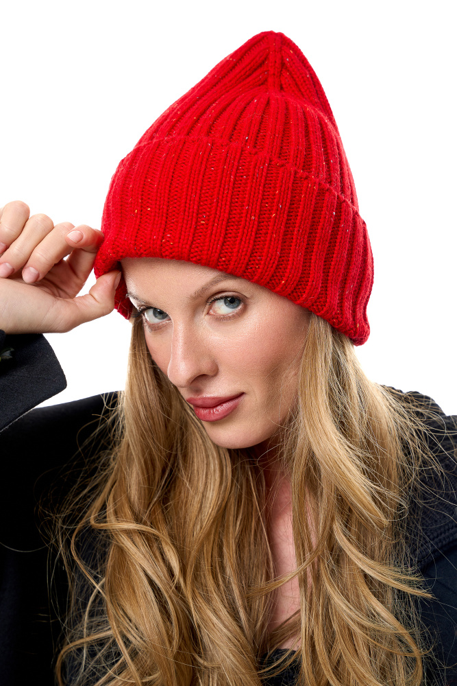 Шапка в 2 размерах из красной ангоры с разноцветными вкраплениями.