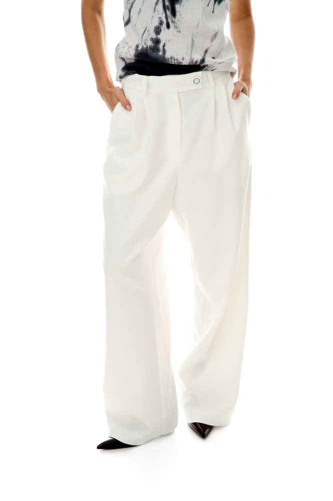 Брюки "Хейли" белого цвет в стиле "олд мани". На брюках есть фиксаторы с пуговицами - вы сами можете менять посадку (заниженную или завышенную).
