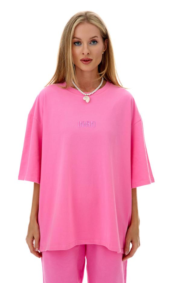 Футболка в взрывном розовом оттенке с выпуклым слитным логотипом UNO MAS UNO.