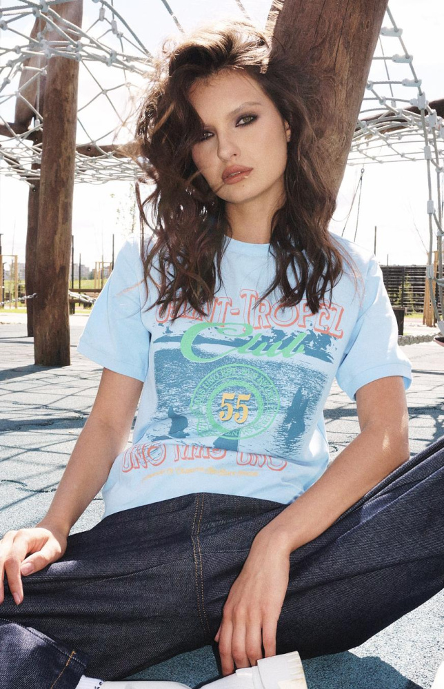Футболка полуоблегающего силуэта в голубом цвете с принтом "Сен-Тропе Club 55".
