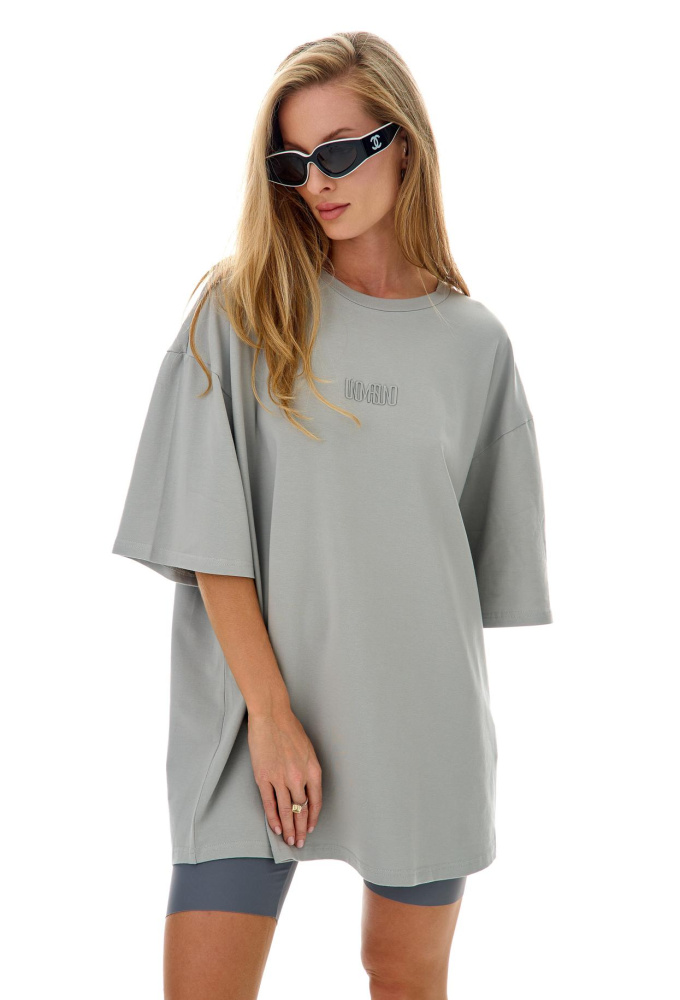 Футболка в сером бетонном оттенке с выпуклым логотипом UNO MAS UNO.