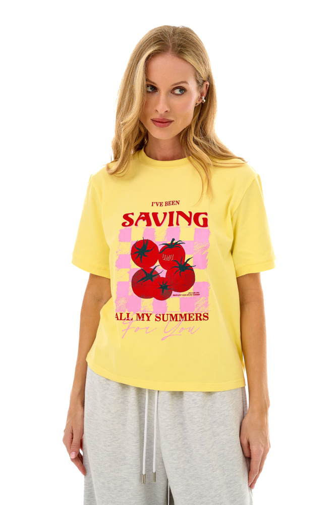 Новый принт с томатами и провокационной метафоричной фразой - I've been saving all my summers for you.