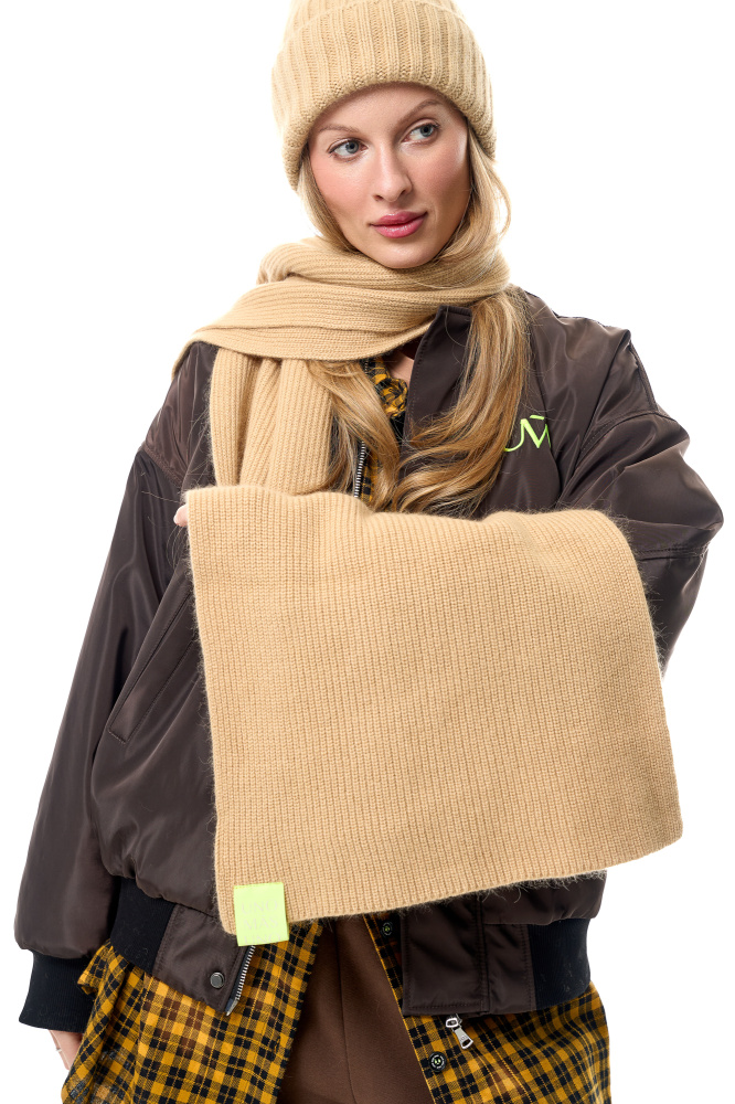 Объемный шарф из ангоры в песочном оттенке.