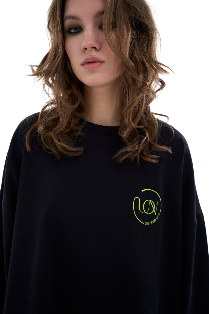 Черный базовый лонгслив с новым ярко-лимонным принтом UNO MAS UNO.