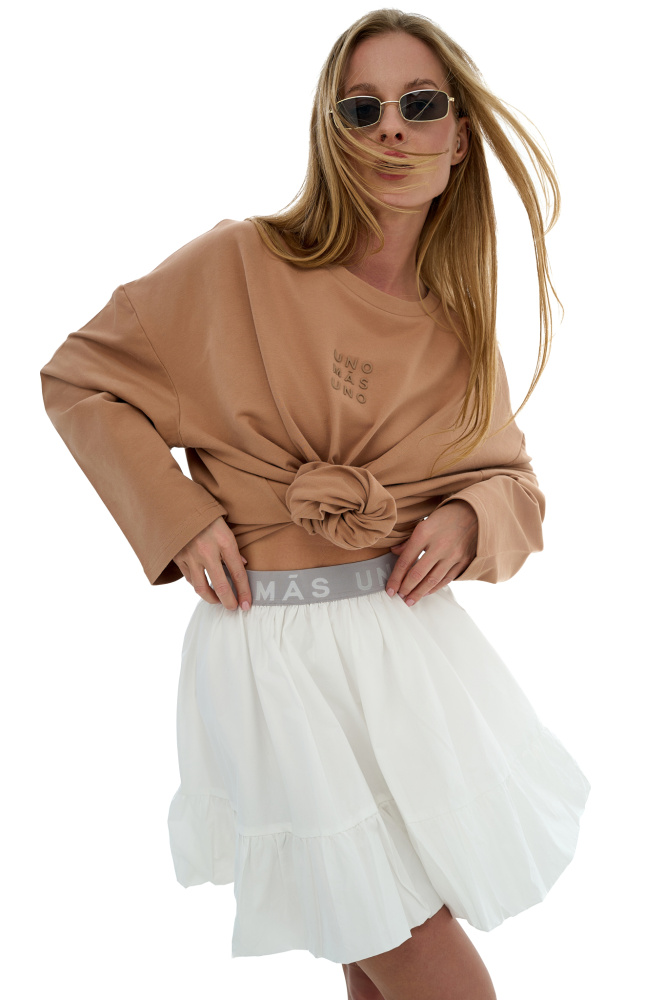 Лонгслив с велюр эффектом с выпуклым логотипом в мускатном оттенке.
