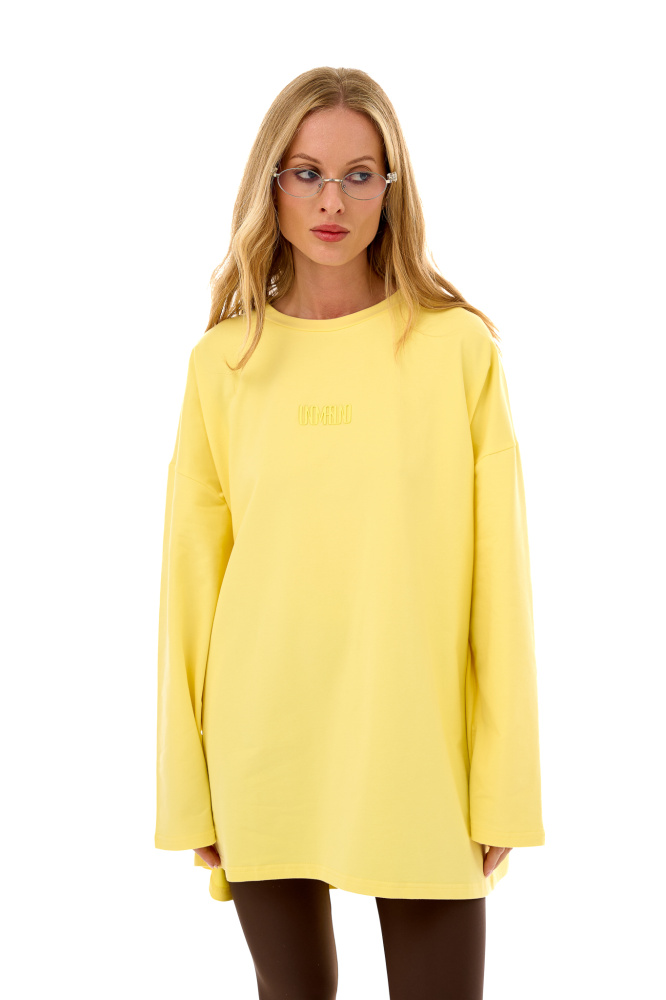 Лонгслив в оттенке "банановый шейк" с велюр эффектом и выпуклым логотипом UNO MAS UNO.