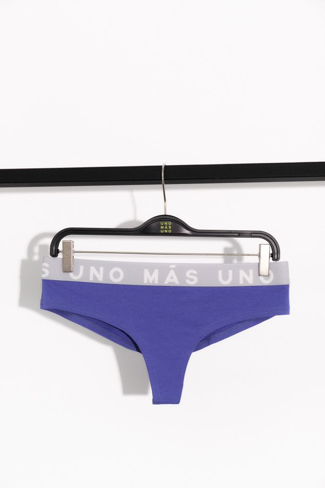 Модель трусов «танга» с брендированной резинкой.