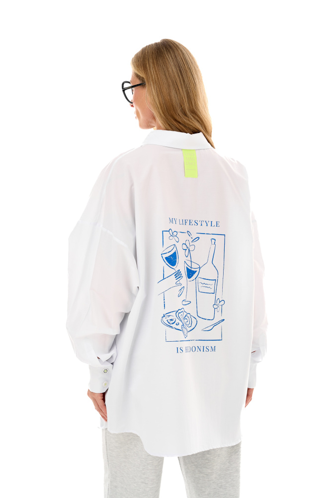 Рубашка оверсайз посадки с новым принтом на спине My lifestyle is gedonism.