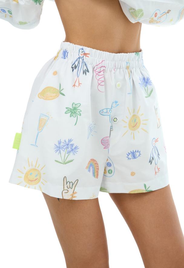 Шорты из хлопка в пижамной стилистике с принтом, разработанным специально для нас! На шорты нанесены все главные ассоциации с UNO MAS UNO и Беларусью - теннис, лимон, картошка, просекко и вкусняшки.