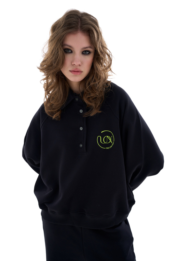 Свитшот-поло с новым логотипом UNO MAS UNO в весенней версии - из петли трехнитки.