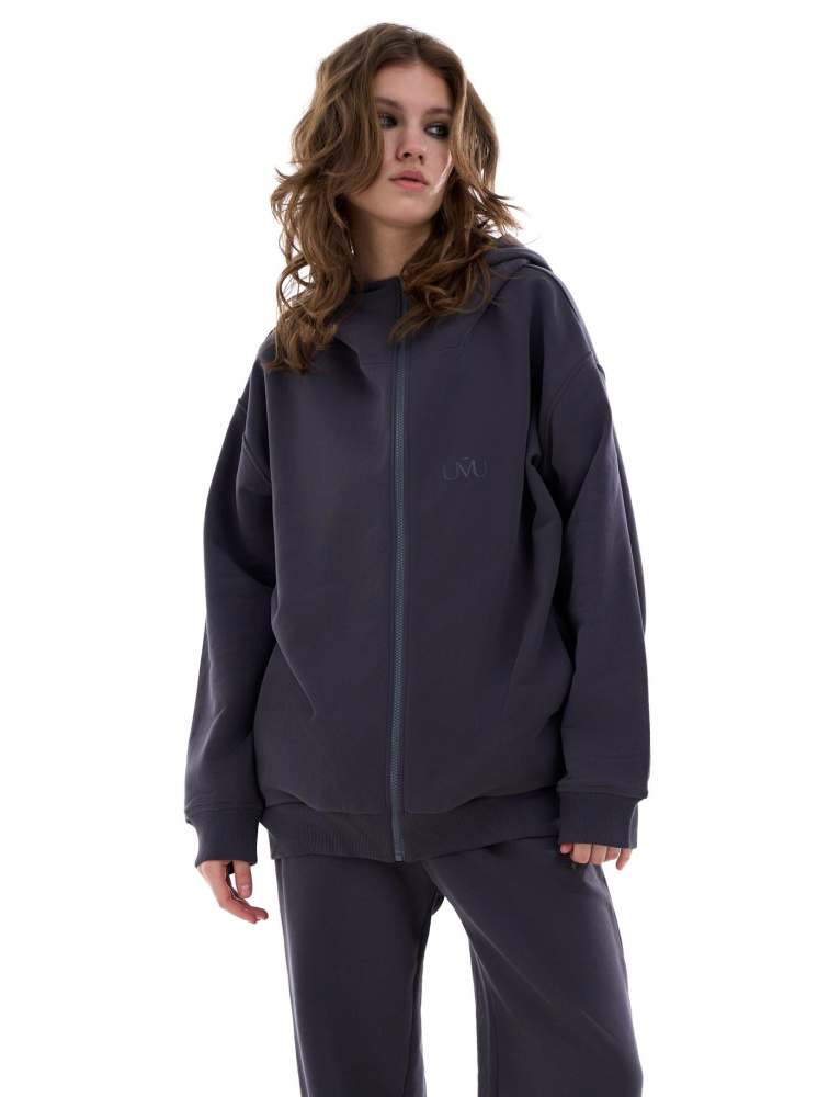 Базовая толстовка в графитовом оттенке с новым принтом "Квадрат Смайлы" на спине.