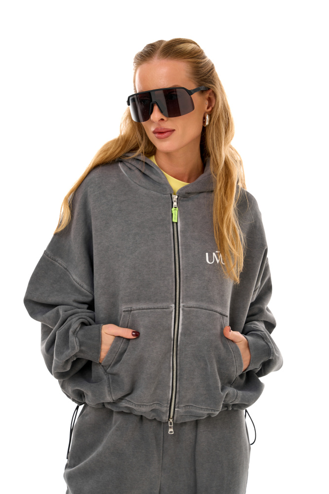 Толстовка окрашена в специальной технике "вытравка" - изначально белое изделие окрашивается в нужный оттенок, характерная черта - выбеленные швы. Толстовка с состаренным эффектом и минималистичным принтом. Модель"Баббл" с фиксаторами - вы можете сами регулировать длину и посадку изделия.