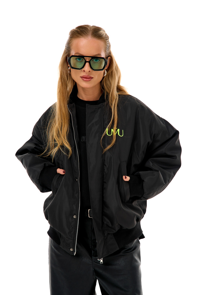 Новая модель бомбера от UNO MAS UNO. Укороченный, с лимонной вышивкой, двойным брендированным замком и утеплителем до -5С-10С.