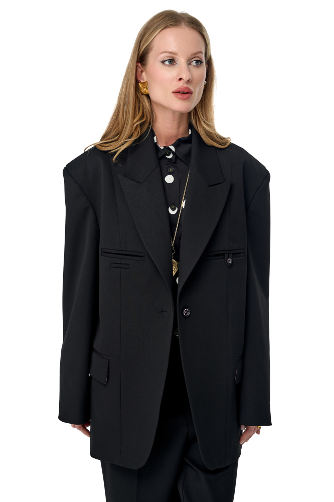 Жакет с множеством многофункциональных карманов из плотной черной ткани. Можно сочетать с брюками в цвет или с джинсами.